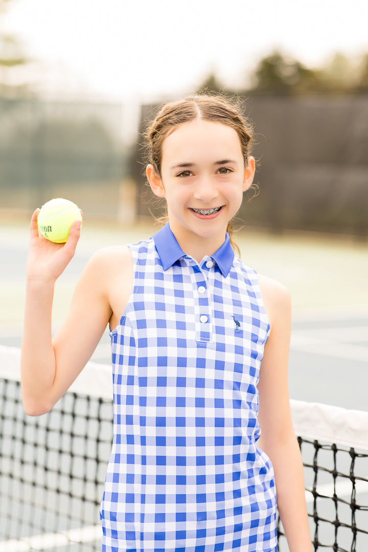 Youth Girls Sail & Serve Tennis Dress | Blue Gingham